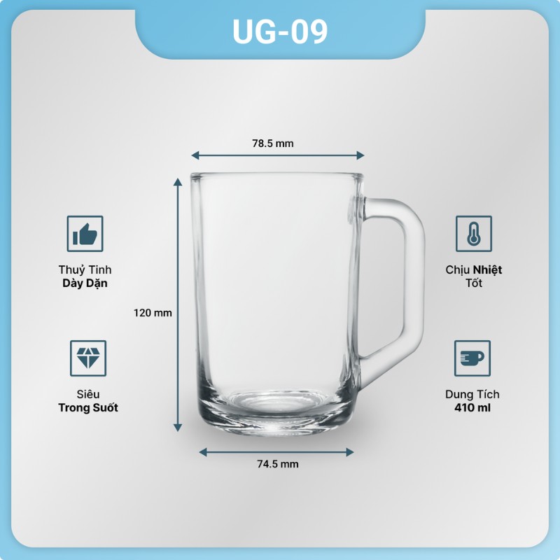 | Sản phẩm | Bộ 6 ly thủy tinh UG | Miệng | 78.5mm |