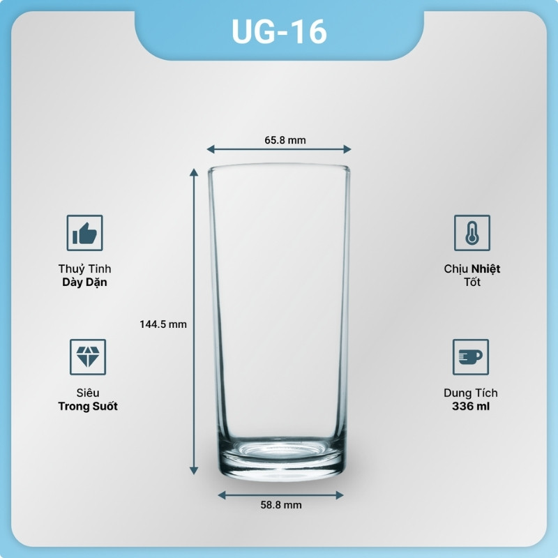 - Không sử dụng ly thủy tinh UG cho các chất lỏng nóng trên 60 độ C hoặc cho thực phẩm có tính acid mạnh, có thể làm hỏng bề mặt thủy tinh.