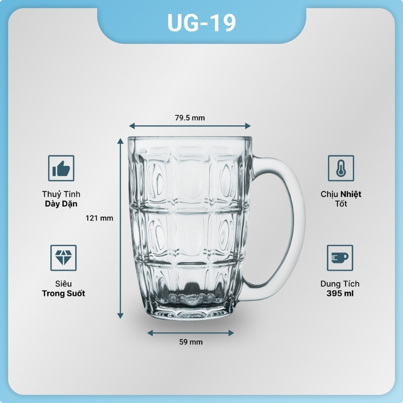 Bộ 6 cốc thủy tinh UG 119 quà tặng có quai dung tích 395ml là một sự kết hợp tuyệt vời giữa thiết kế đẹp mắt và chất liệu thủy tinh cứng cáp, tạo nên một sản phẩm lý tưởng sử dụng hàng ngày trong đời sống.