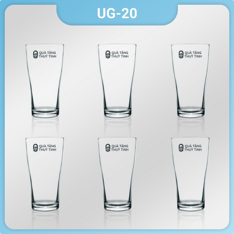Bộ 6 cốc thủy tinh UG 120 in logo dáng thắt eo dung tích 384ml là một sản phẩm độc đáo và sang trọng, chắc chắn sẽ gây ấn tượng mạnh mẽ với người sử dụng.