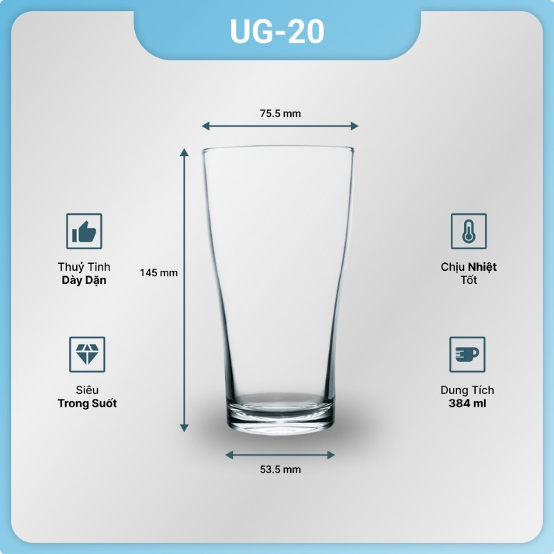 Với dung tích 384ml, những chiếc cốc này không chỉ có kích thước lý tưởng cho nhiều loại đồ uống mà còn là điểm nhấn đặc biệt trong bất kỳ bàn tiệc nào.