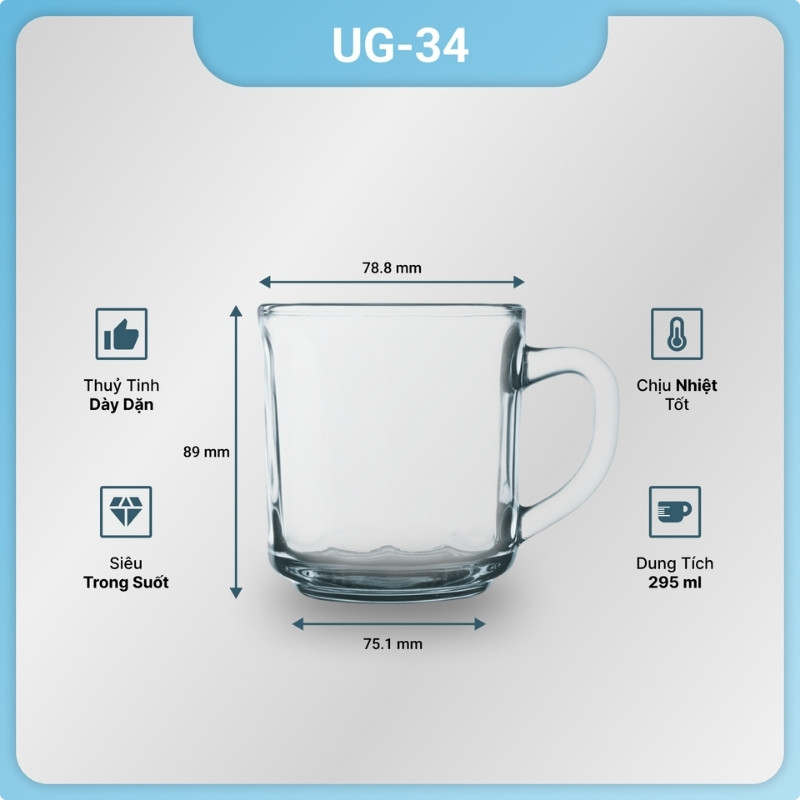 - Không sử dụng ly thủy tinh UG cho các chất lỏng nóng trên 60 độ C hoặc cho thực phẩm có tính acid mạnh, có thể làm hỏng bề mặt thủy tinh.