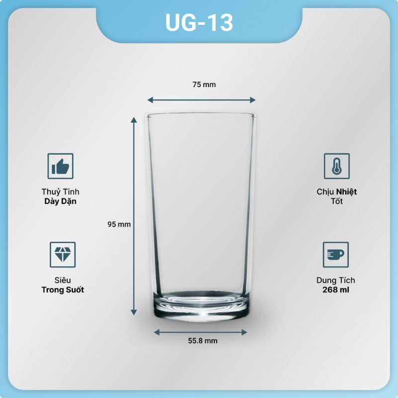 - Không sử dụng ly thủy tinh UG cho các chất lỏng nóng trên 60 độ C hoặc cho thực phẩm có tính acid mạnh, có thể làm hỏng bề mặt thủy tinh.