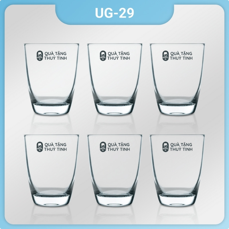 Bộ 6 ly thủy tinh UG 129 in logo dáng chữ U dung tích 262ml đặc trưng bởi kiểu dáng chữ U tinh tế và sang trọng, phù hợp với nhiều loại nước uống, dễ dàng sử dụng trong đời sống hàng ngày.