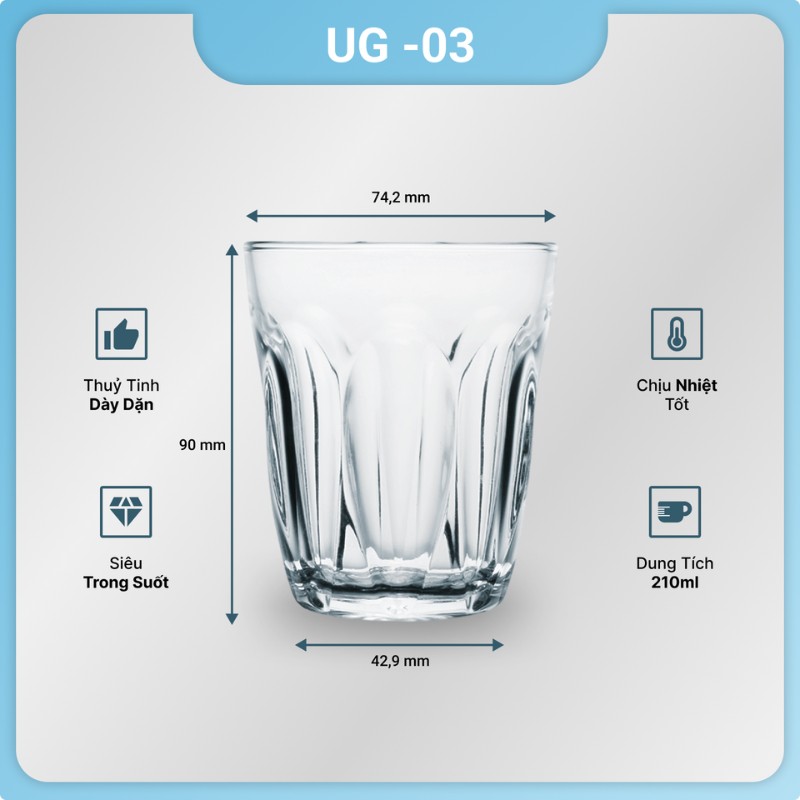 | Sản phẩm | Bộ 6 ly thủy tinh UG | Miệng | 74.2mm |
